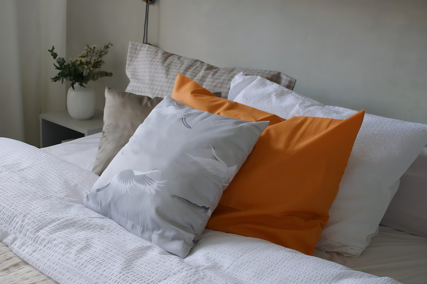Príjemný, na pocit teplý materiál je tou správnou voľbou na jeseň. Damask, hladká bavlna alebo už na dotyk hrejivý flanel sú ideálnou voľbou pre jesenné i zimné ročné obdobie. Materiál na obliečkach môžete naaranžovať spoločne s vlnenou dekou alebo hladkou elegantnou dekoračnou prikrývkou.