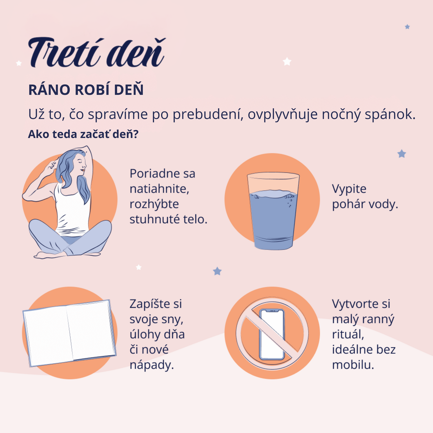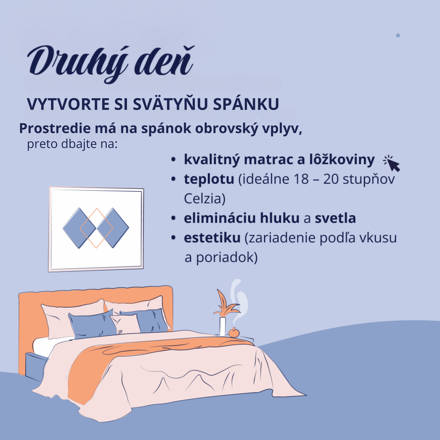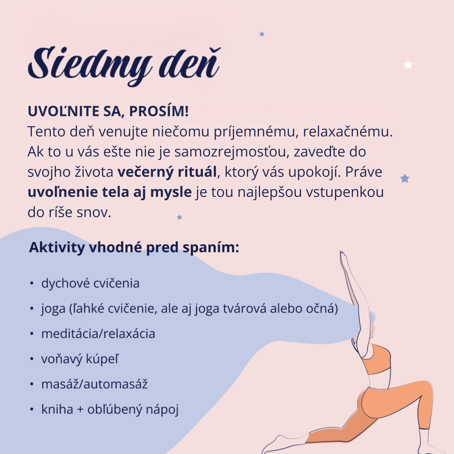 Kvalitný spánok – všetci po ňom túžime, no, žiaľ, nie je samozrejmosťou. Častokrát je to práve naopak – vyžaduje si naše úsilie. Aj preto sme pre všetkých, ktorí uvažujú, ako zlepšiť spánok, pripravili týždenný plán s konkrétnymi tipmi. Vyskúšate ich s nami?