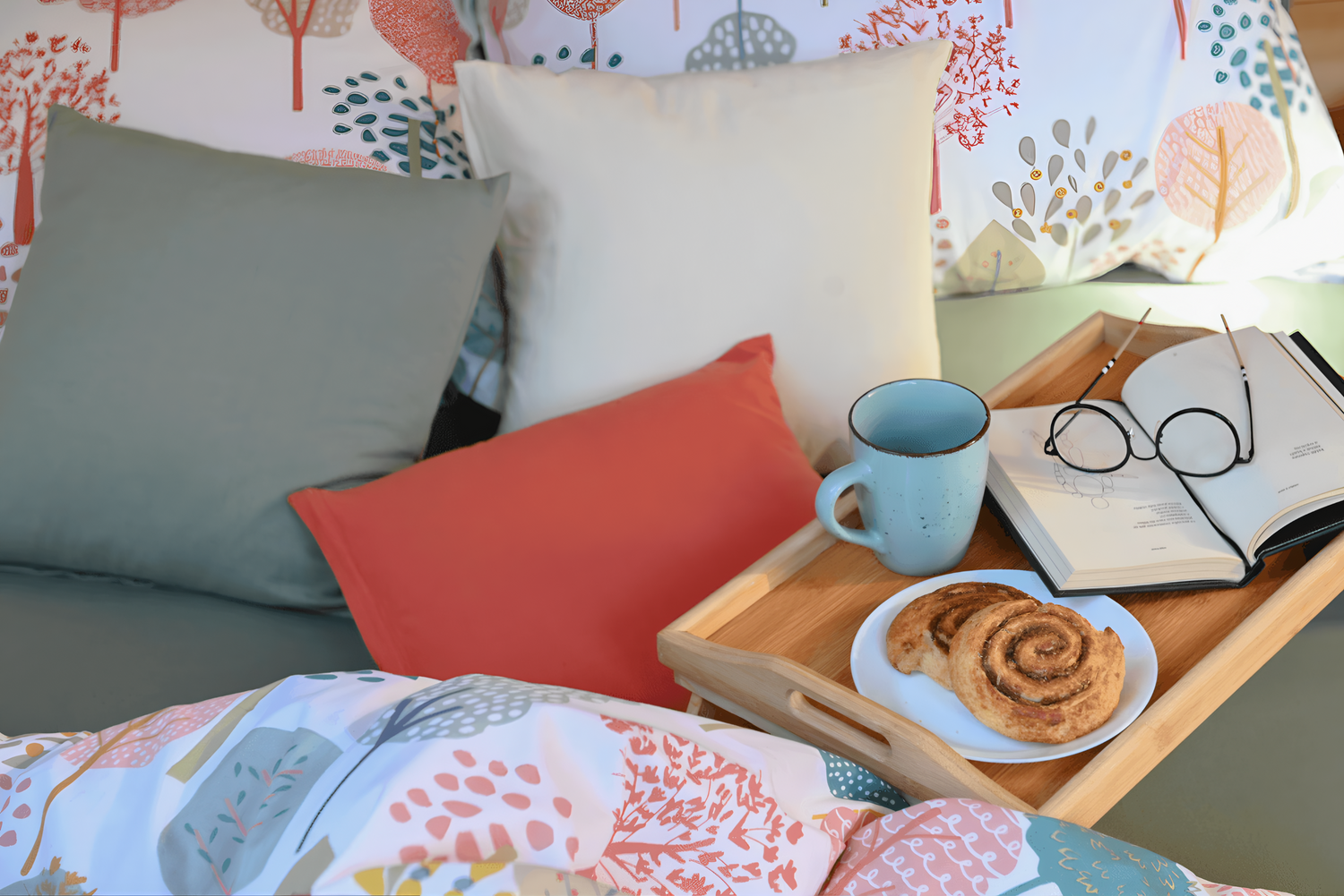 Drsné povrchy a „ťažké“ materiály v obývačke pomôžu zjemniť huňaté deky, lesklé vankúše, ako i mäkké koberce. Kožená sedačka či kovový stolík si ich vyslovene pýtajú. Opačným príkladom môže byť čalúnená posteľ. Zamatovým materiálom poťahových látok posteľná bielizeň z mikroplyšu veľmi nepristane, hoci to je len jeden z príkladov. Našťastie, sortiment prikrývok a obliečok je bohatý.