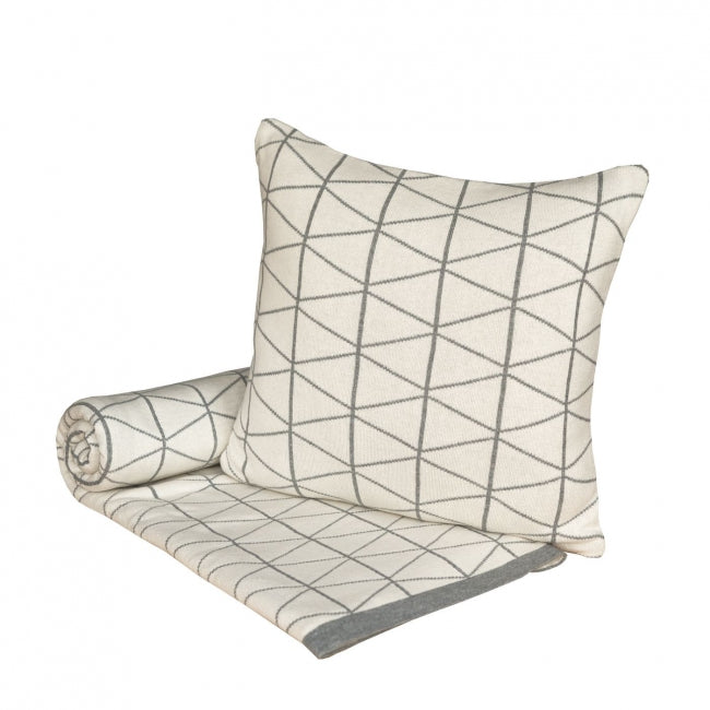Deka pletená DESIGN geo smotanová sivá