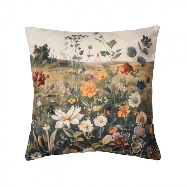 Obraz rozkvitnutej lúky Vás na tomto pastelovom návleku na dekoračný vankúšik priam uchváti. Motív je inšpirovaný klasicistickými maľbami, ktoré ospevujú krásu divokej prírody. Mimoriadne umne zobrazené kvety margaréty, nevädze, divokých lúčnych bylín sú na pozadí doplnené pokojnou letnou scenériou nadýchaných mrakov a zamatových hôr. Vintage návlek na dekoračný vankúšik, ktorý Vám doma nemôže chýbať. Návlek na vankúšik ART je vyrobený z pevnej štruktúrovanej tkaniny s digitálnou potlačou z oboch strán. Má všívaný zips a je možné k nemu samostatne zakúpiť aj výplňový vankúšik v rovnakom rozmere. Jasné farby a zaujímavé motívy robia z tohto návleku perfektný designový doplnok pre Vašu pohovku či kreslo.