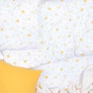 Nekrčivé jerseyové obliečky s motívom hviezdičiek urobia radosť každému malému aj veľkému hvezdárovi a hvezdárke. Štylizované hviezdičky v žltom a šedom odtieni lákajú k počítaniu, kým nezaspíte… Zaujímavosťou o hviezdach je fakt, že za dobrých pozorovacích podmienok je možné uvidieť v našich končinách voľným okom len niečo okolo 2 500 hviezd na nočnej oblohe. Je to o dobrú polovicu menej, než koľko uvidíte v oblastiach úplne bez svetiel. A teraz už je čas ísť spať, tak dobrú hviezdnu noc! Luxusné obliečky JERSEY sú neuveriteľne splývavé a hebké na dotyk. Jemná pletenina, z ktorej je posteľná bielizeň ušitá, je vyrobená z dlhovlákenných česaných priadzí, nekrčí sa a nevyžaduje žiadne žehlenie. Posteľná bielizeň má praktické zapínanie na zips.