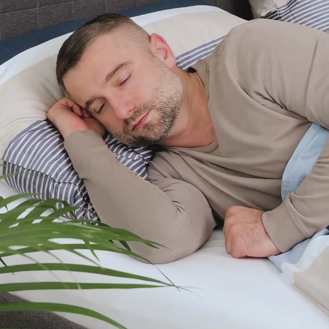 Obliečky KLASIK pruhy modrá béžová