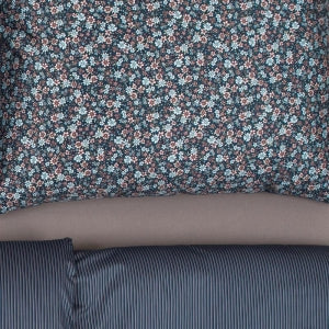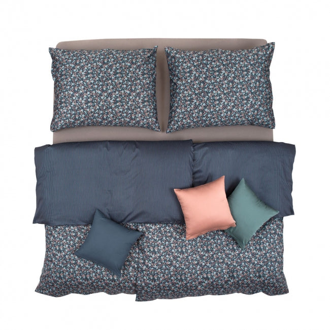 Obliečky SATÉN DESIGN kvietky prúžky tmavá modrá