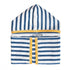 Pruhovaná plážová osuška s kapucňou je hitom každého kúpania! Či už trávite čas pri mori, alebo len tak na záhrade pri bazéne, vždy oceníte jej hebkosť. Modré prúžky sú doplnené tmavo žltým lemovaním, ktoré pripomína slnko na vodnej hladine. Bavlnená plážová osuška VELUR s kapucňou je skvelým spoločníkom pre chvíľky strávené pri vode. Plážová osuška VELUR má na jednej strane jemný, zamatový omak, na druhej krátke slučky, ktoré vás dokonale osušia. Aj pri náročnejšom zaobchádzaní na piesočnatej pláži, kúpalisku alebo pri rybníku je osuška odolná proti zatrhávaniu slučiek. Praktická kapucňa pomôže so sušením vlasov. Zabaľte sa do našej pohodlnej plážovej osušky a užívajte si zaslúžený odpočinok pri vode! Rozmer 70 x 140 cm je vhodný aj pre deti.