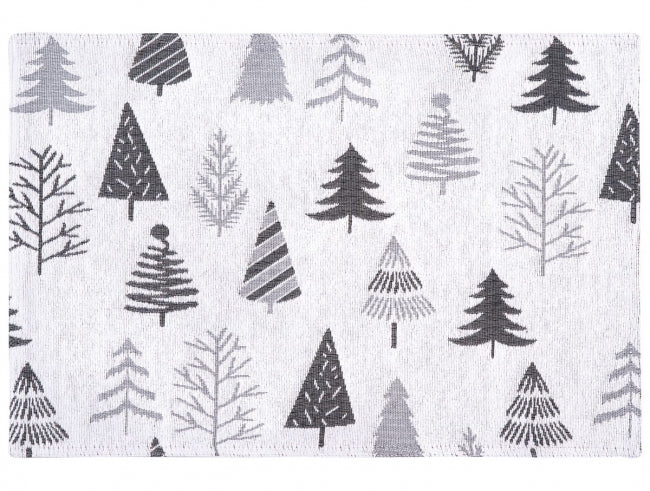 Decentné zimné prestieranie so zasneženým lesom vkusne ozdobí aj Vašu jedáleň svojim štýlovým šedým motívom na bielom pozadí. Minimalistické stromčeky sa skvele hodia k modernej i tradičnej výzdobe Vášho domova a prestieranie Vám skvele poslúži po celú zimu, nielen počas Vianoc. Prestieranie s množstvom krásnych motívov vykúzli behom okamihu príjemnú atmosféru pri Vašom stole. Rozmanité vytkané vzory môžete meniť podľa nálady alebo sezóny a vždy tak mať pre Vašu rodinu aj priateľov milé prekvapenie.