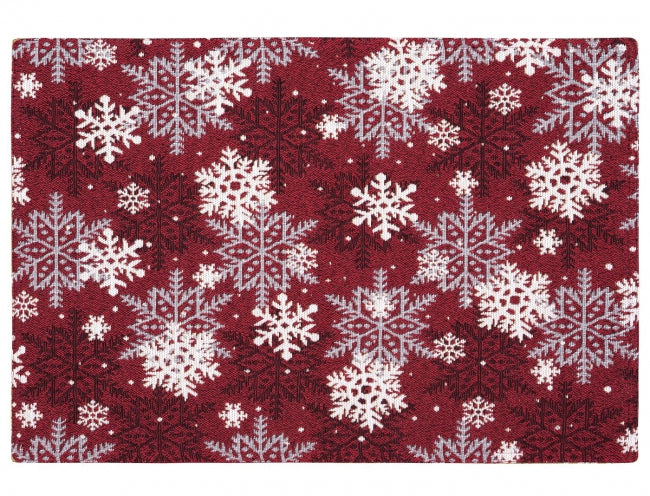 Vianočné prestieranie v červenej farbe je priam zasnežené úžasnými vločkami v sivej a bielej farbe. Vytkávaný motív dodá sviatočnú náladu každej jedálni alebo jedálenskému kútu, skvele sa kombinuje s obliečkami na vankúšiky v rovnakom dizajne. Prestrite pre svojich najbližších v elegantnom štýle nadchádzajúcich sviatkov. Prestieranie s množstvom krásnych motívov vykúzli behom okamihu príjemnú atmosféru pri Vašom stole. Rozmanité vytkané vzory môžete meniť podľa nálady alebo sezóny a vždy tak mať pre Vašu rodinu aj priateľov milé prekvapenie.