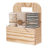 Súprava dreveného stojančeka a troch elegantných utierok vyčarí úsmev na tvári každému, kto ocení jednoduchosť, funkčnosť a nenútenú krásu. Utierky v harmonických tónoch sivej, béžovej a prírodnej bielej sú ozdobené prúžkami aj výraznou waflovou štruktúrou. Spolu vytvárajú vkusný celok, ktorý zútulní každú kuchyňu.
