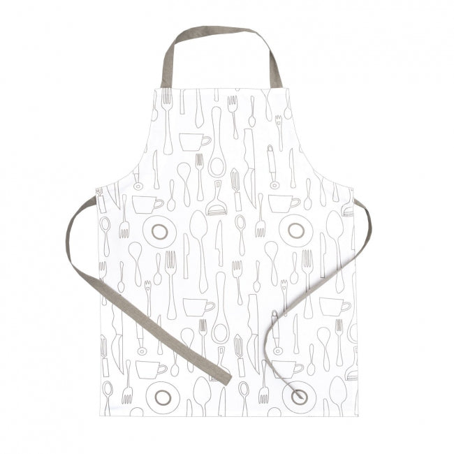 Dizajnová kuchynská zástera DEKORO v nadčasovej bielo-béžovej farebnej kombinácii. Moderne poňatý motív príborov, riadu a kuchárskeho náčinia sa vo Vašej kuchyni bude krásne vynímať. Zástera, ktorá vám bude robiť radosť každý deň. Kuchynská zástera DEKORO s originálnym motívom je skvelý darček pre každého milovníka a milovníčku varenia. Ochráni odev pred ušpinením pri varení ako v modernej kuchyni, tak aj na chalupe. Má praktické zaväzovanie na popruh. Táto nenahraditeľná pomocníčka je užitočnou súčasťou každej domácnosti.