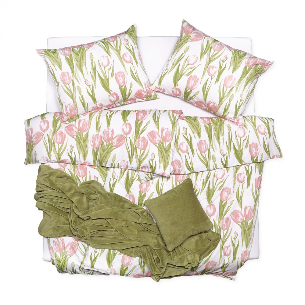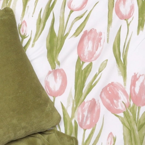 Kvalitné bavlnené obliečky plné rozkvitnutých tulipánov s jemnými ružovými lístkami vnesú do Vašej spálne jar a romantickú náladu.